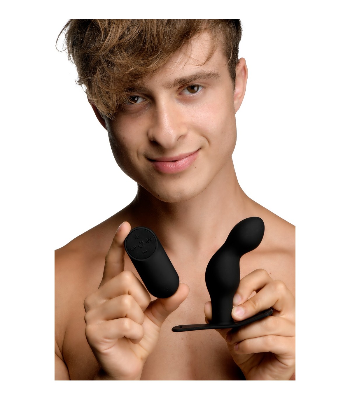VIBRATING PROSTATE PLUG W/ SILICONE CONTROL AND W/ HARNESS