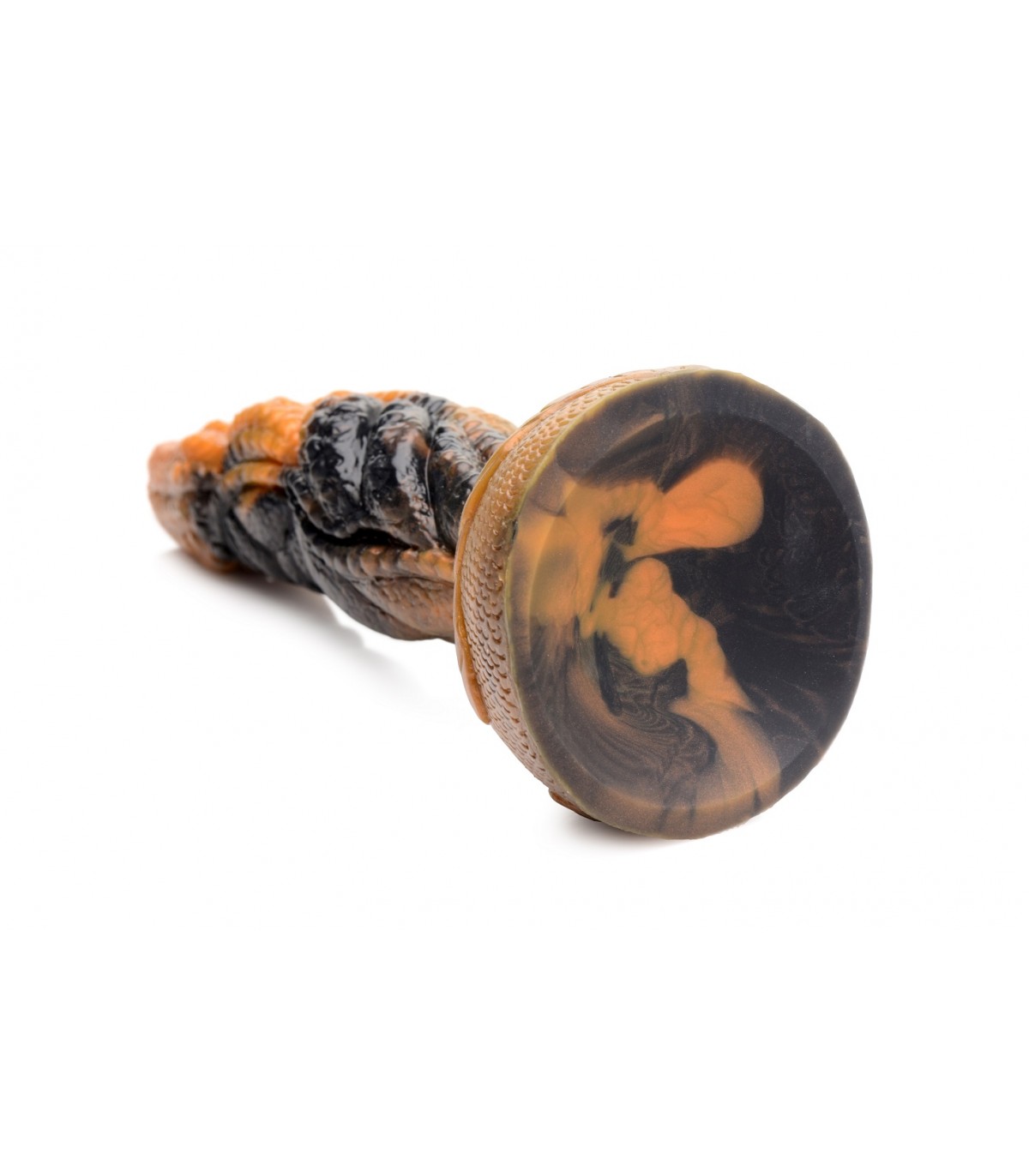 Fantasy Dildo: This scale demonic dick hails from the depths of the desert. The fine detail of the base and shaft add to the realism of the fantasy. Enjoy every ridge, curve, bump, and fold of this tentacle-like dragon cock. Each dildo is a unique red, brown, and orange heather color. Prepare a costume or use your imagination and act out your favorite fantasy scene!