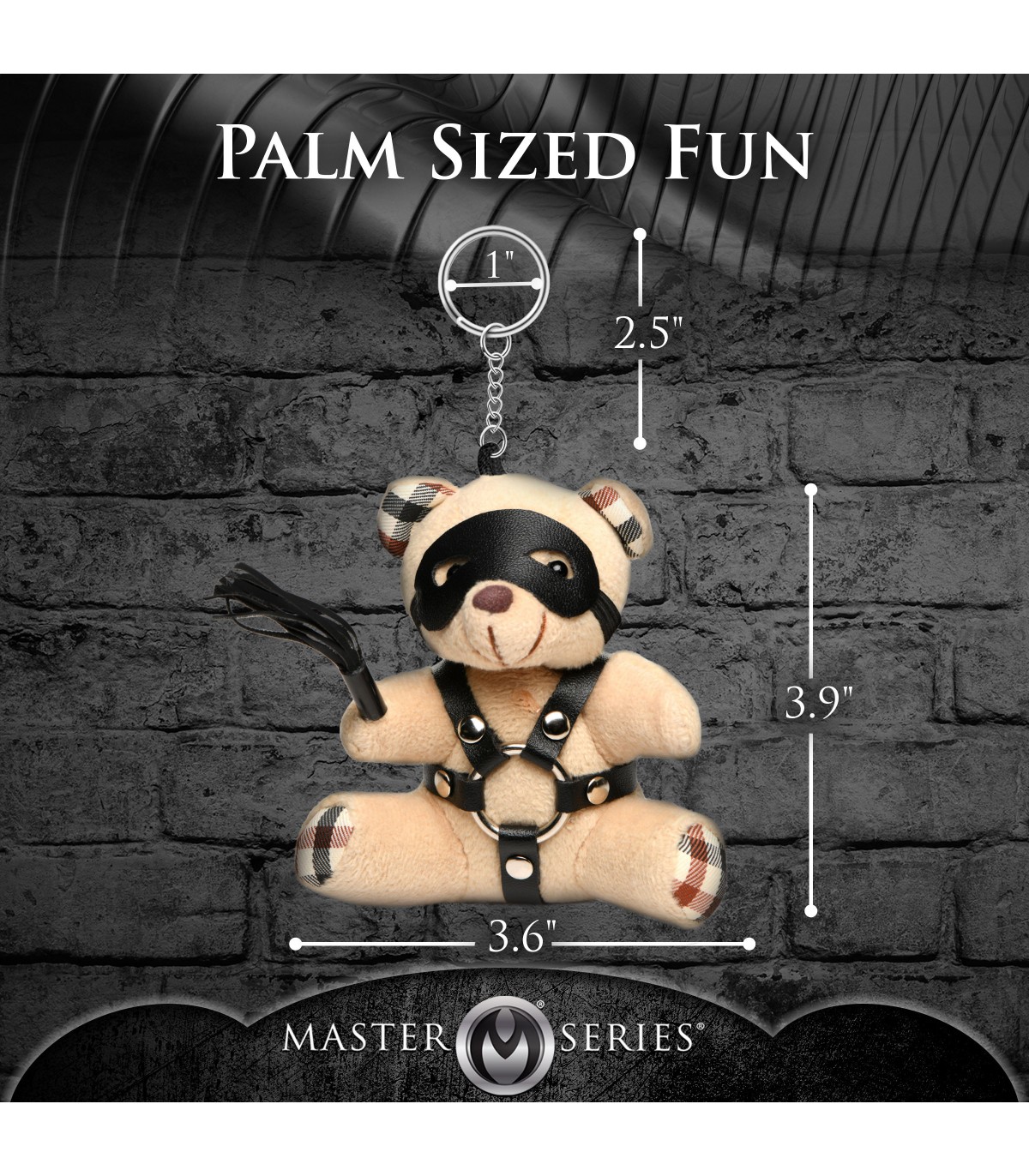 Great Novelty Gift!!: Get this Daddy Bondage Bear for yourself or as a gift for someone else! It fits in the palm of your hand and is a great way to bring out your kinky side! This bear has a removable eye mask, a mini flogger, and a PU leather and metal bondage harness.