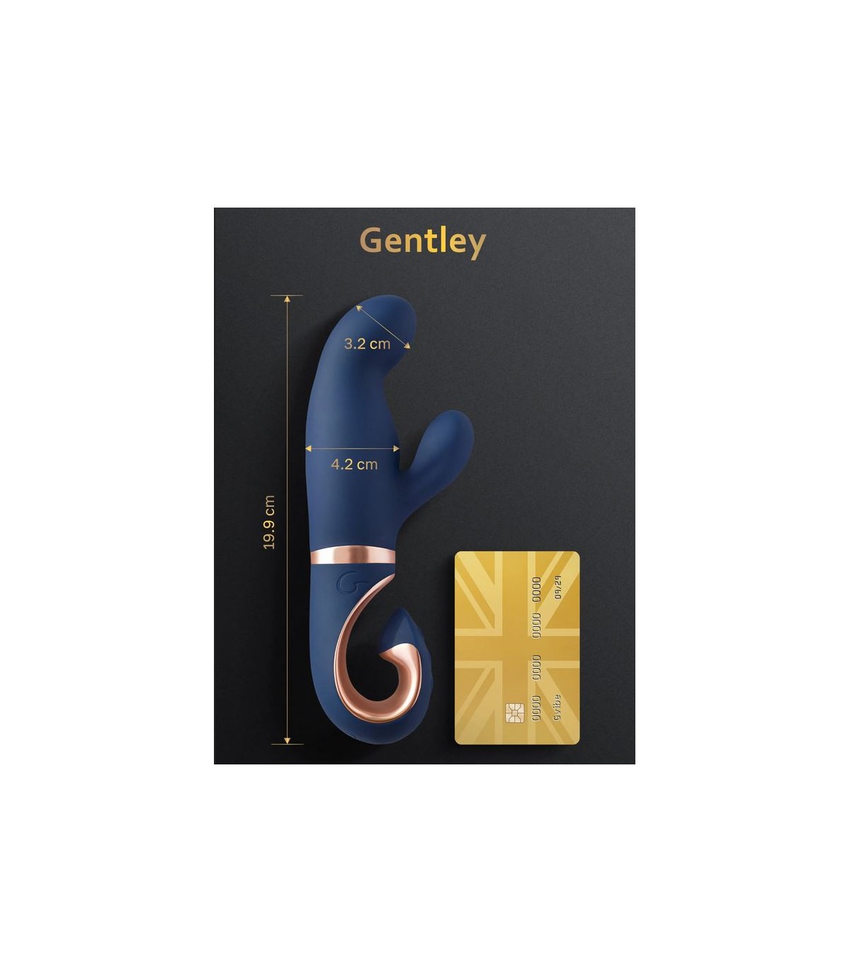 Gentley's vaginal shaft is as anatomical as possible: wide at the bottom where the sensitive area of the vagina is, narrowing slightly above and then bending in the G-zone area to direct stimulation.