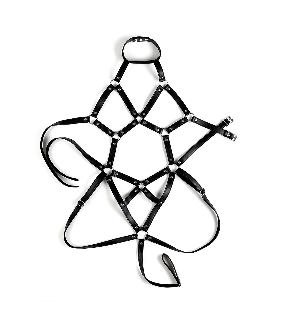 Fully adjustable women's body harness made of vegan leather.