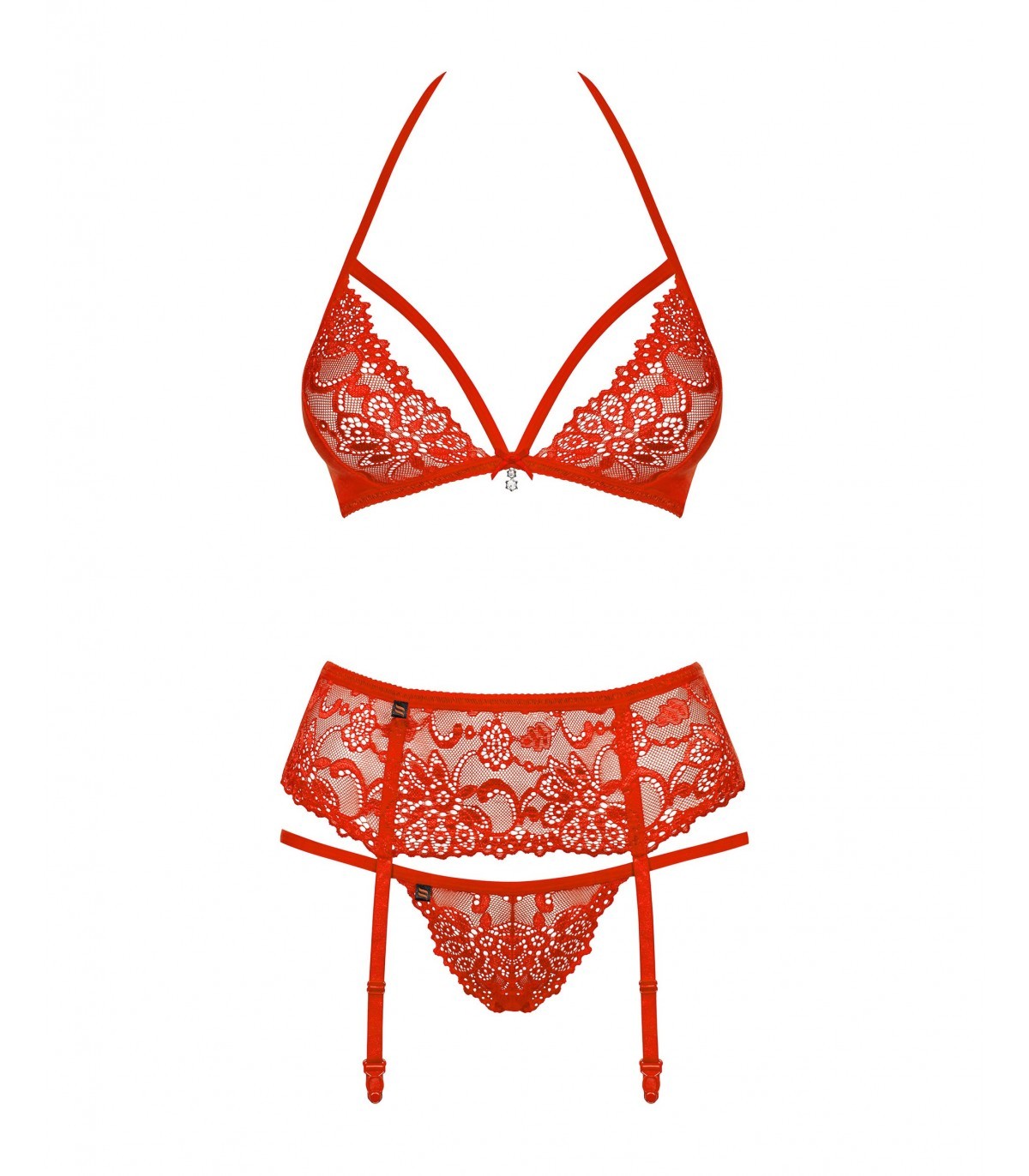 - the set includes bra, garter belt and thong (looks even more attractive when you add stockings!)