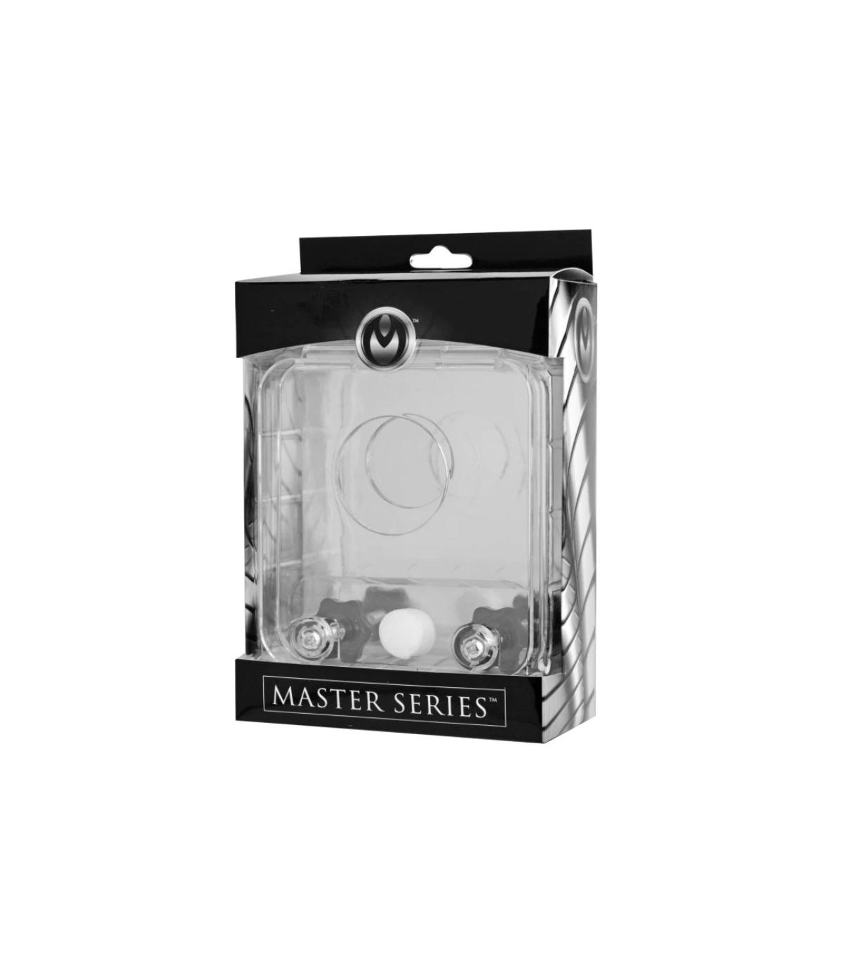 For the most intense ball play get this acrylic cock and ball crusher. This cock and ball bit can apply pressure to both the cock and balls or just the balls, simply by inserting your cock and balls through the butt hole. Then screw on the nuts to apply more and more pressure. If you want, you can just have your balls crushed you can simply slide your cock through the handy cock hole in the other acrylic board.