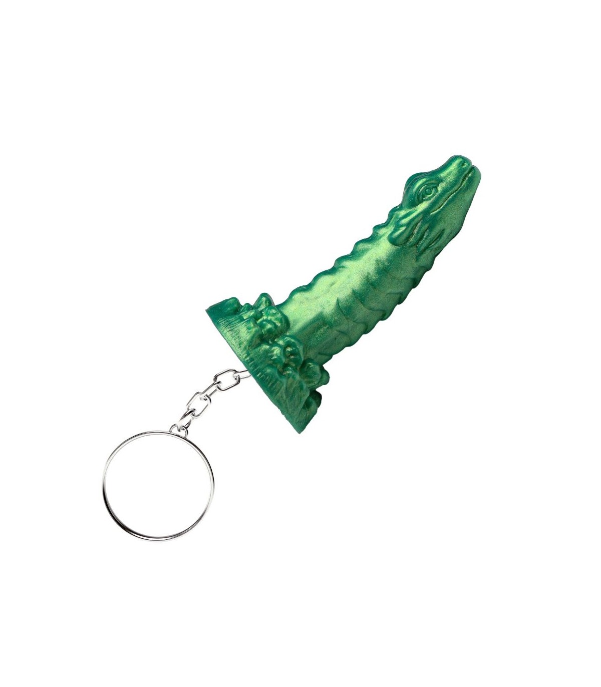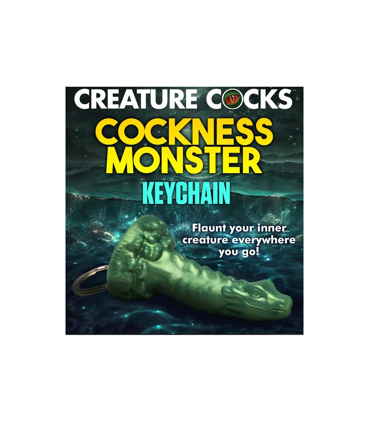 This green Cockness monster inspired by the Loch Ness Monster has shrunk down to travel with you wherever you go! Let your freak flag fly with these Creature Cocks Keychains! Show that you're into fantasy role-play, mythical sex, or hot horror monsters! Clip them to your keys, attach them to your phone case, clip them to a purse or wallet, or hang them from your rearview mirror to add some style and kinky fun! All tiny cocks are made from premium, phthalate-free, body-safe silicone and the metal is nickel-free for sensitive skin. Not for internal use. Novelty item only.