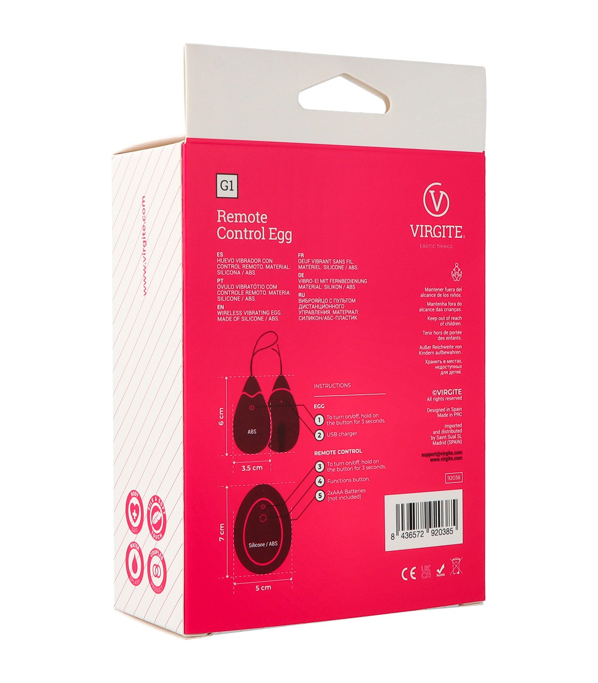 Rechargeable vibrating egg with remote control made of high quality soft silicone.
