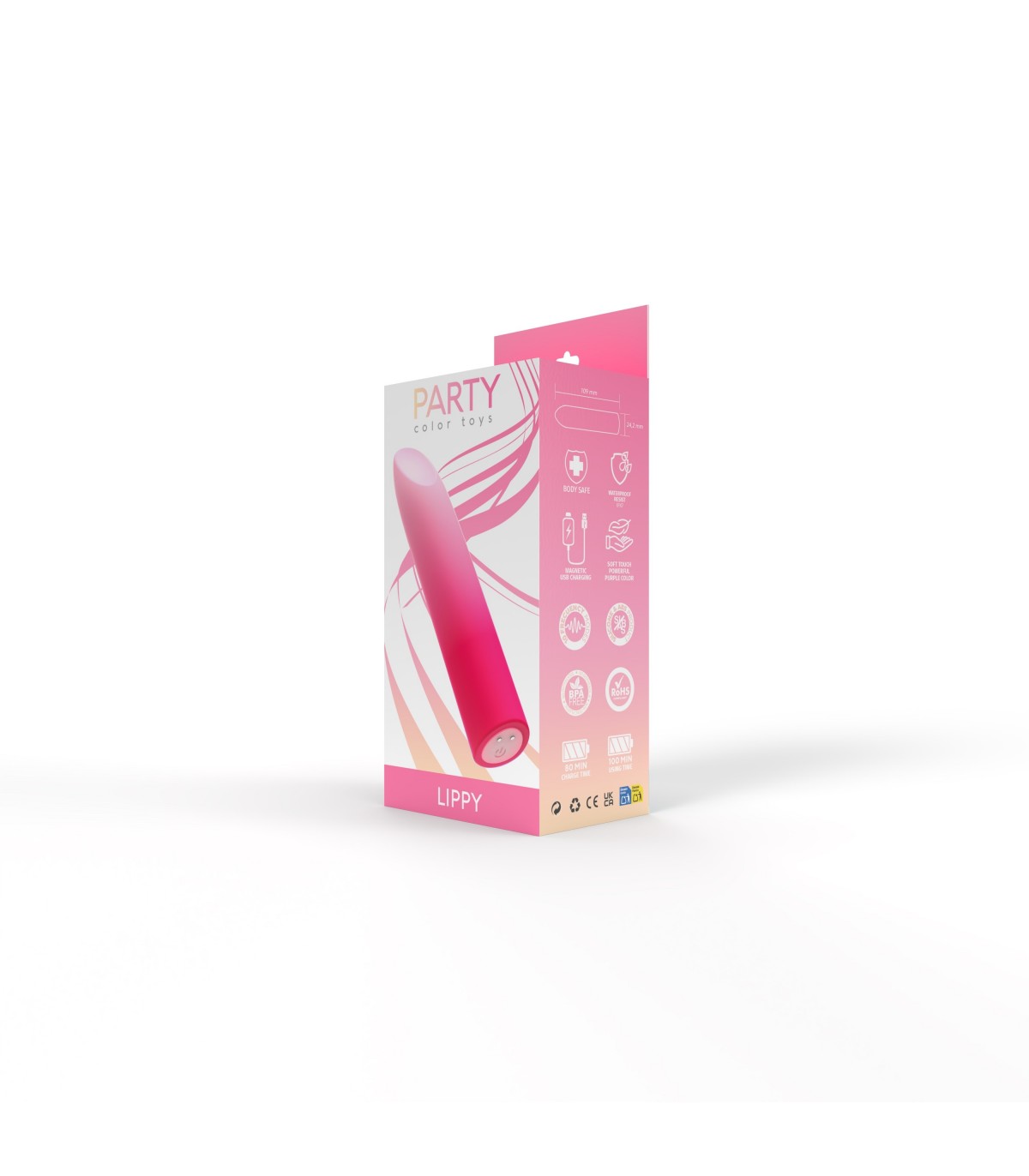 Rechargeable vibrating bullet with a very silky touch via USB cable. It has 10 intensities controlled by a single button.