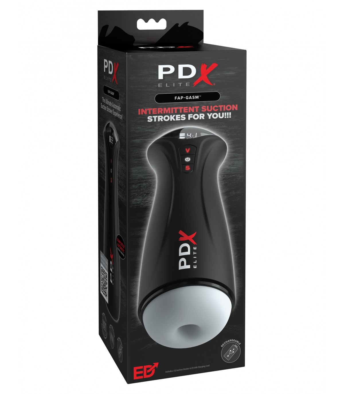 The PDX ELITE Fap-Gasm elevates masturbation with powerful intermittent suction and vibration for the ultimate masturbation experience. It’s a perfect storm of sensations for heightened solo sex sessions that can be customized to your personal mood! Get ready for explosive, hands-free pleasure as the intermittent suction technology automatically sucks your penis in and out. Designed for ultimate pleasure, the textured walls of the ultra-smooth sleeve are like nothing you’ve ever felt before! The Fap-Gasm is ready when you are and will deliver the most intense orgasms you’ve ever had!