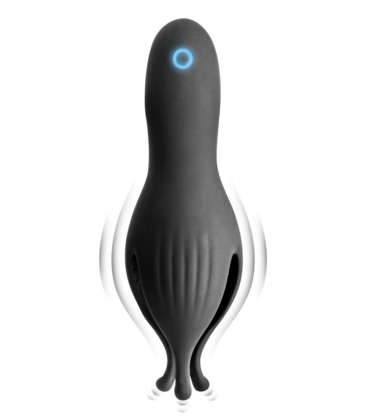 Rechargeable men's masturbator made of silicone for glans stimulation.