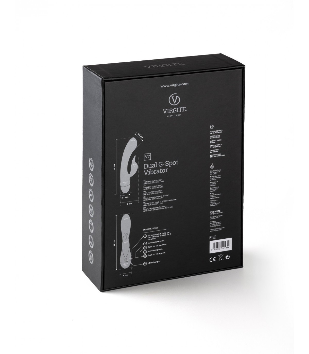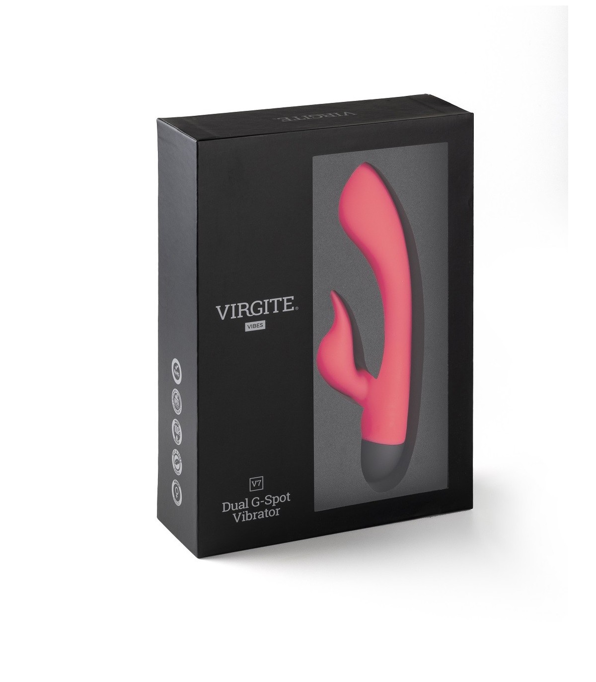 Rechargeable vibrator with clitoral stimulator made of high quality silky soft silicone. Presented in an elegant window box.