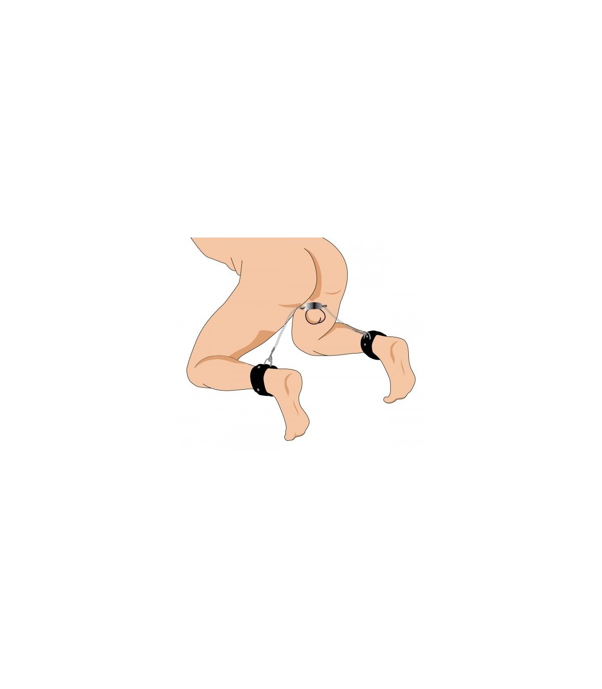Place the testicles inside the ring and fasten the ankles to the handcuffs and you will have a perfect immobilization.