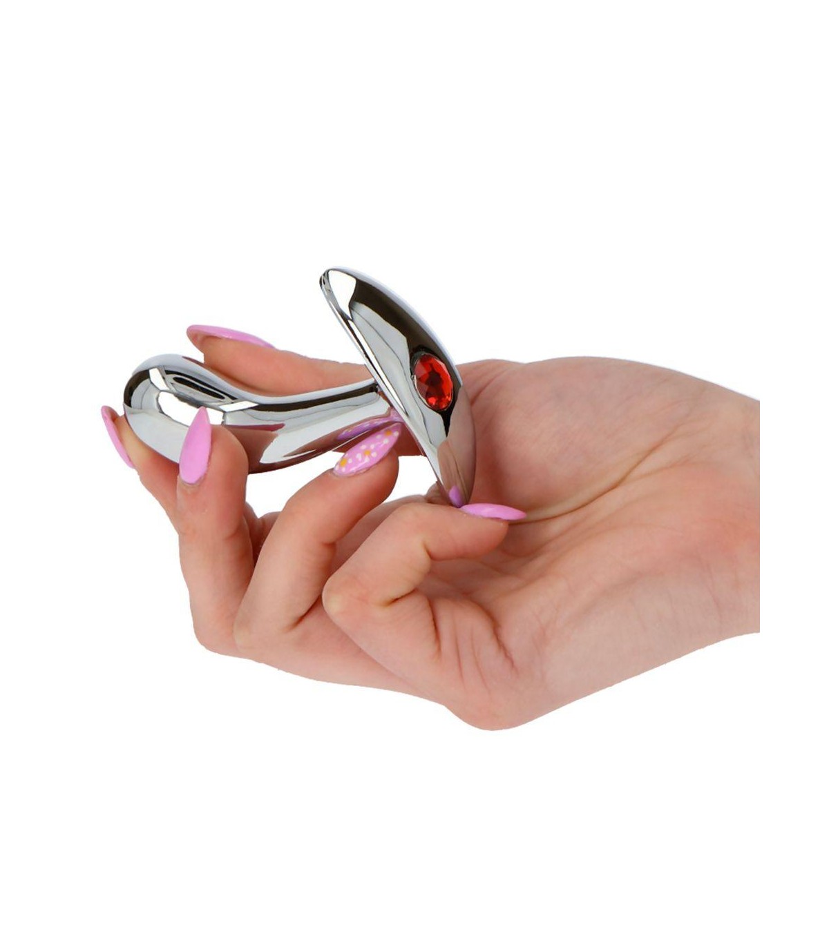 An aluminum anal plug with a shape designed to easily reach the P-spot. The concave base makes it secure when fully inserted, making it ideal for beginners in anal stimulation. It comes with an elegant jewel to decorate the toy.
