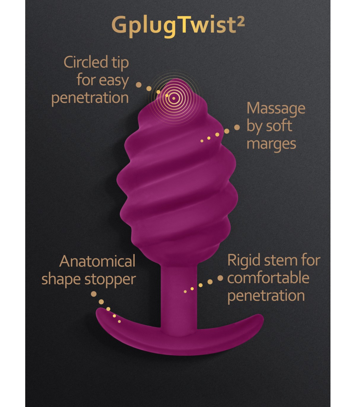 GplugTwist2 ha uno stelo rigido, grazie al quale puoi facilmente avvitare questo plug nel tuo ano.