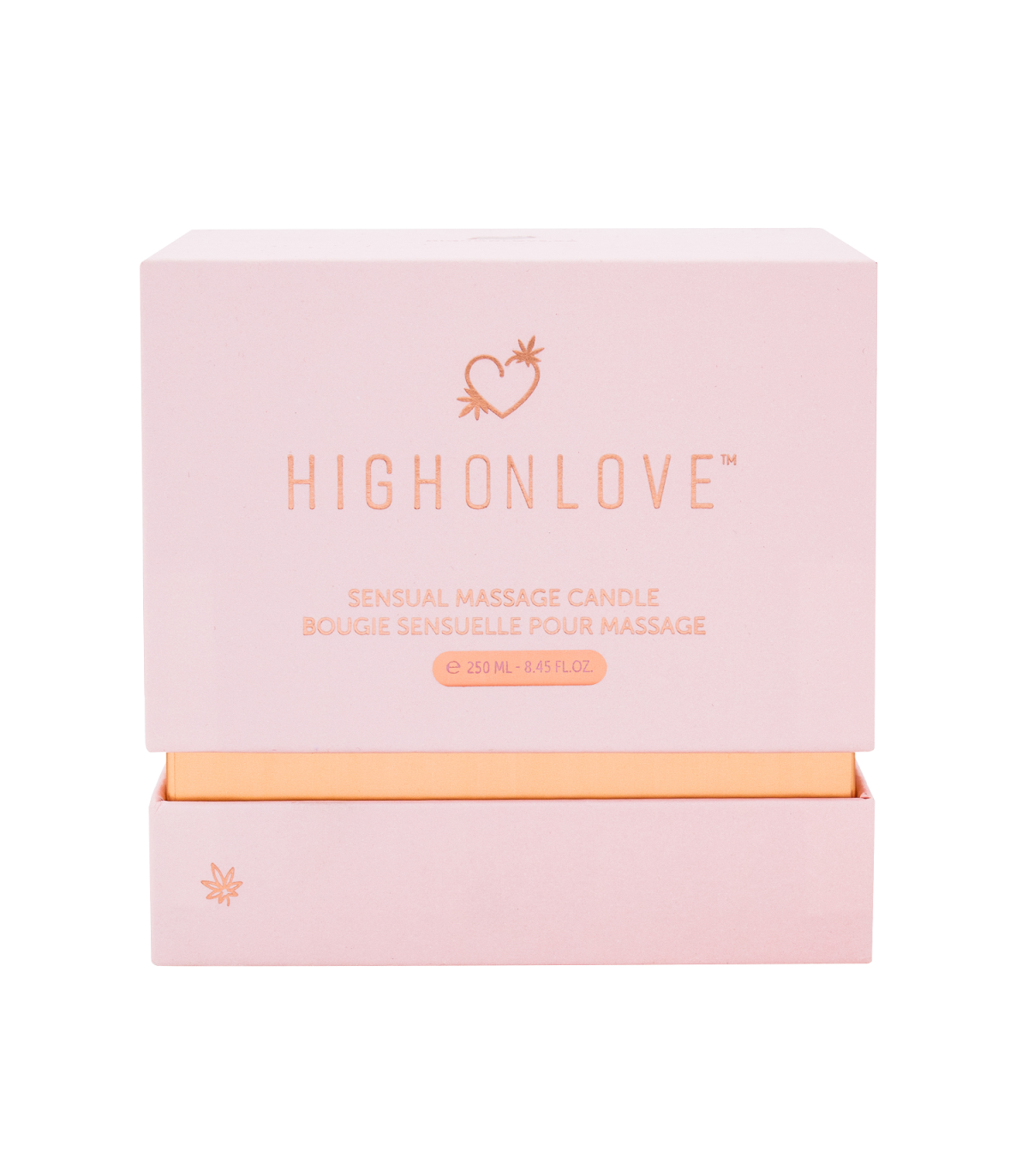 Alza il fuoco e crea l'atmosfera per un massaggio intimo con la lussuosa candela da massaggio sensuale a base di soia HighOnLove®, miscelata con olio di semi di canapa nutriente e olio di cocco.