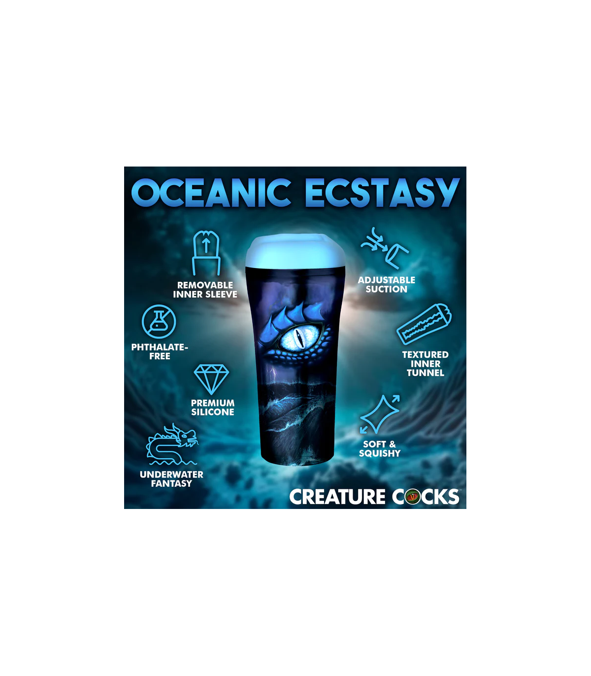 Affronta le meraviglie del mare profondo con questo mostro marino di Pussidon. Il tratto blu pallido ha labbra morbide e sollevate e un piccolo foro per il tuo divertimento. All'interno del buco ci sono file di nervature strutturate, scanalature e nuvole che ti faranno impazzire mentre ti immergi e ti diverti a pompare nel buco stretto. Controllare la pressione e l'aspirazione utilizzando il tappo in silicone alla base della scatola. Tienilo dentro e ogni pompa aggiungerà un po' di pressione e aspirazione per una compressione più stretta. Togliere la spina per sbloccarlo. La custodia si apre una volta rimossa la spina in modo che possa essere facilmente risciacquata e lasciata scorrere l'acqua. Per un processo di pulizia ancora più accurato, rimuovere il manicotto dell'aspiratore e lavarlo separatamente prima di lasciarlo asciugare all'aria. Posizionare il coperchio sopra una volta reinserita la manica per mantenerla priva di polvere e detriti. Utilizzare solo con lubrificanti a base d'acqua. Concediti le tue fantasie fantascientifiche o horror perdute mentre cedi ai tuoi desideri oscuri.