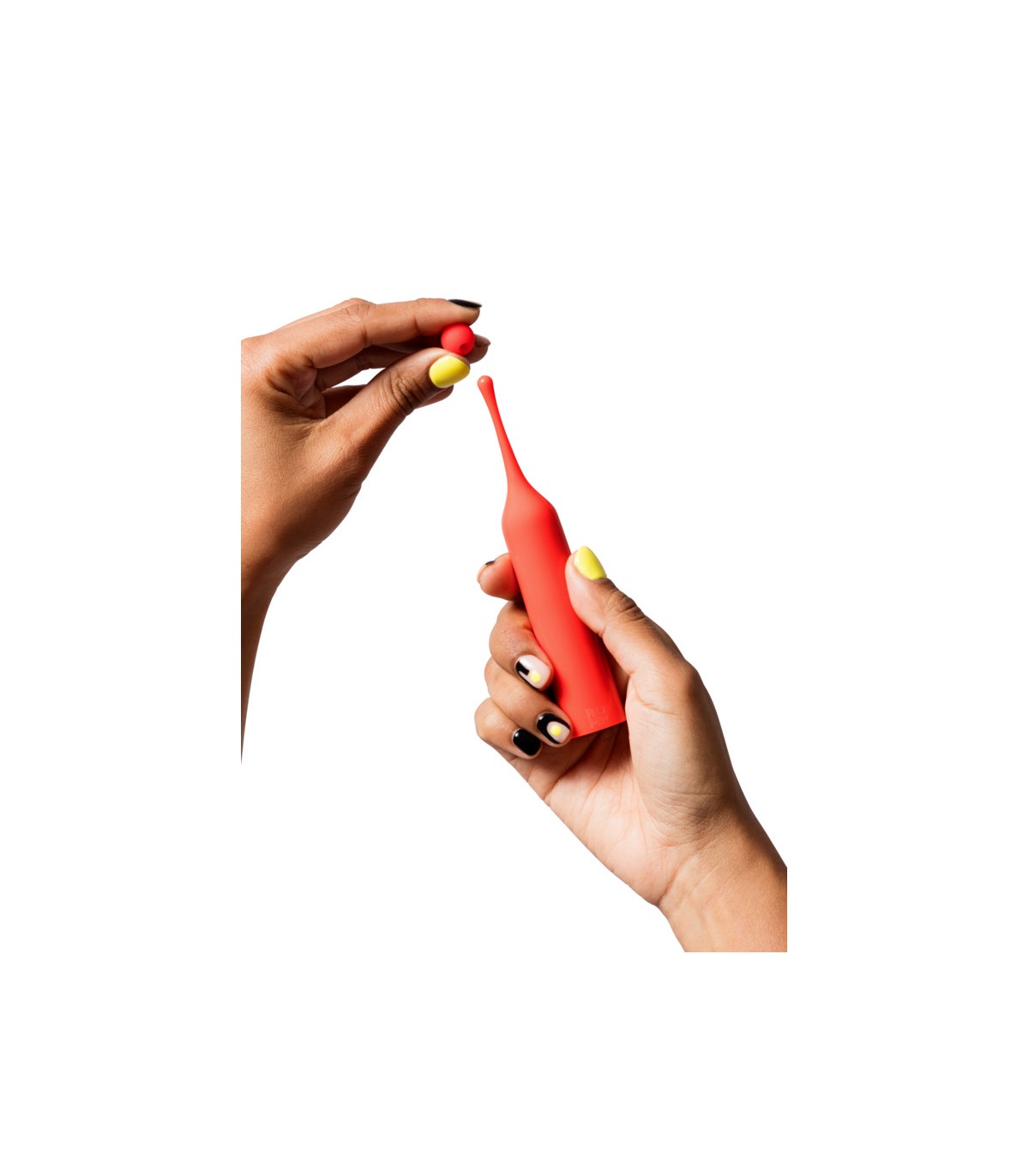 - Vibratore a punta rotonda: la punta arrotondata coccola il clitoride, i capezzoli o i testicoli con una stimolazione mirata ad alta frequenza.