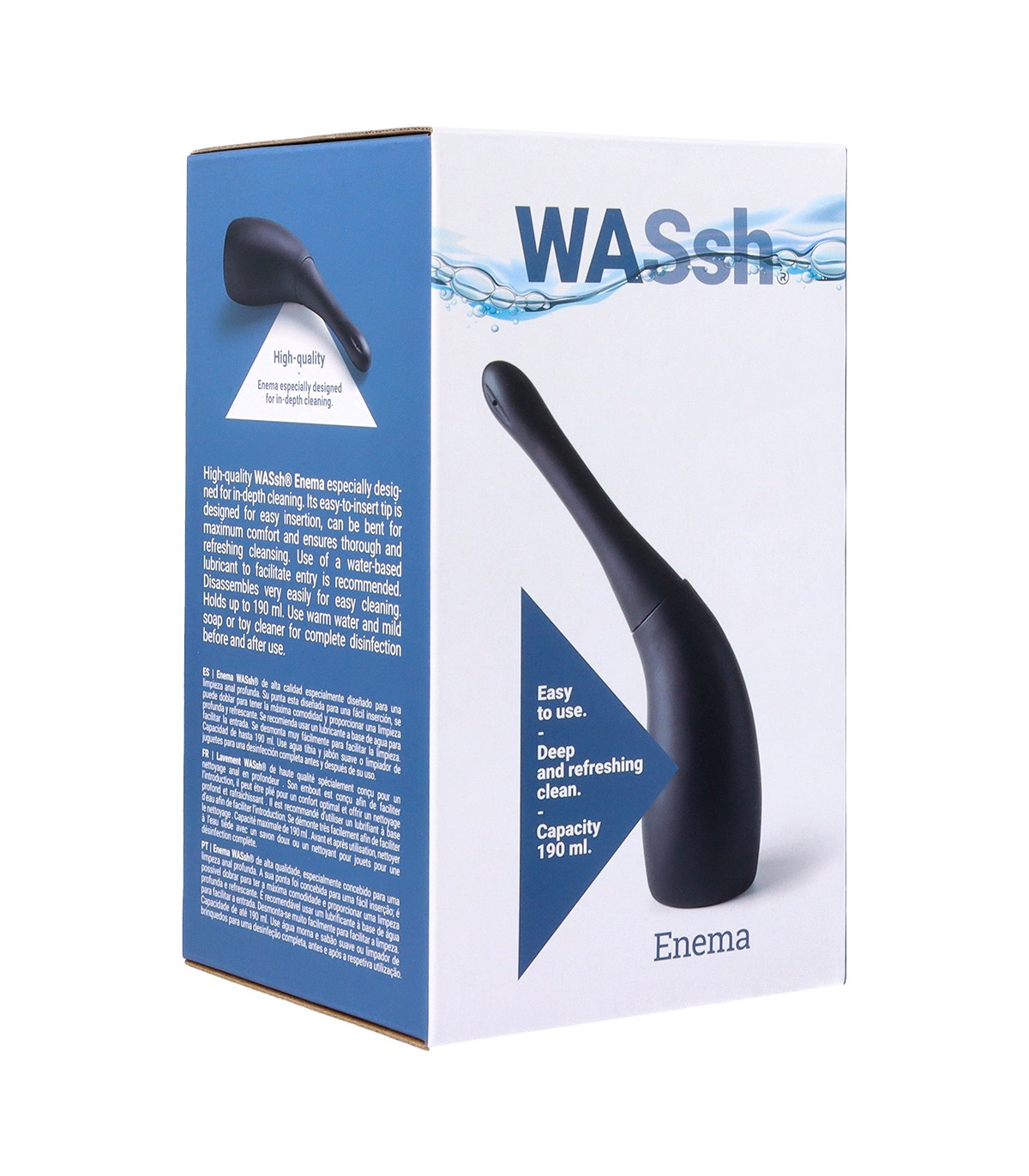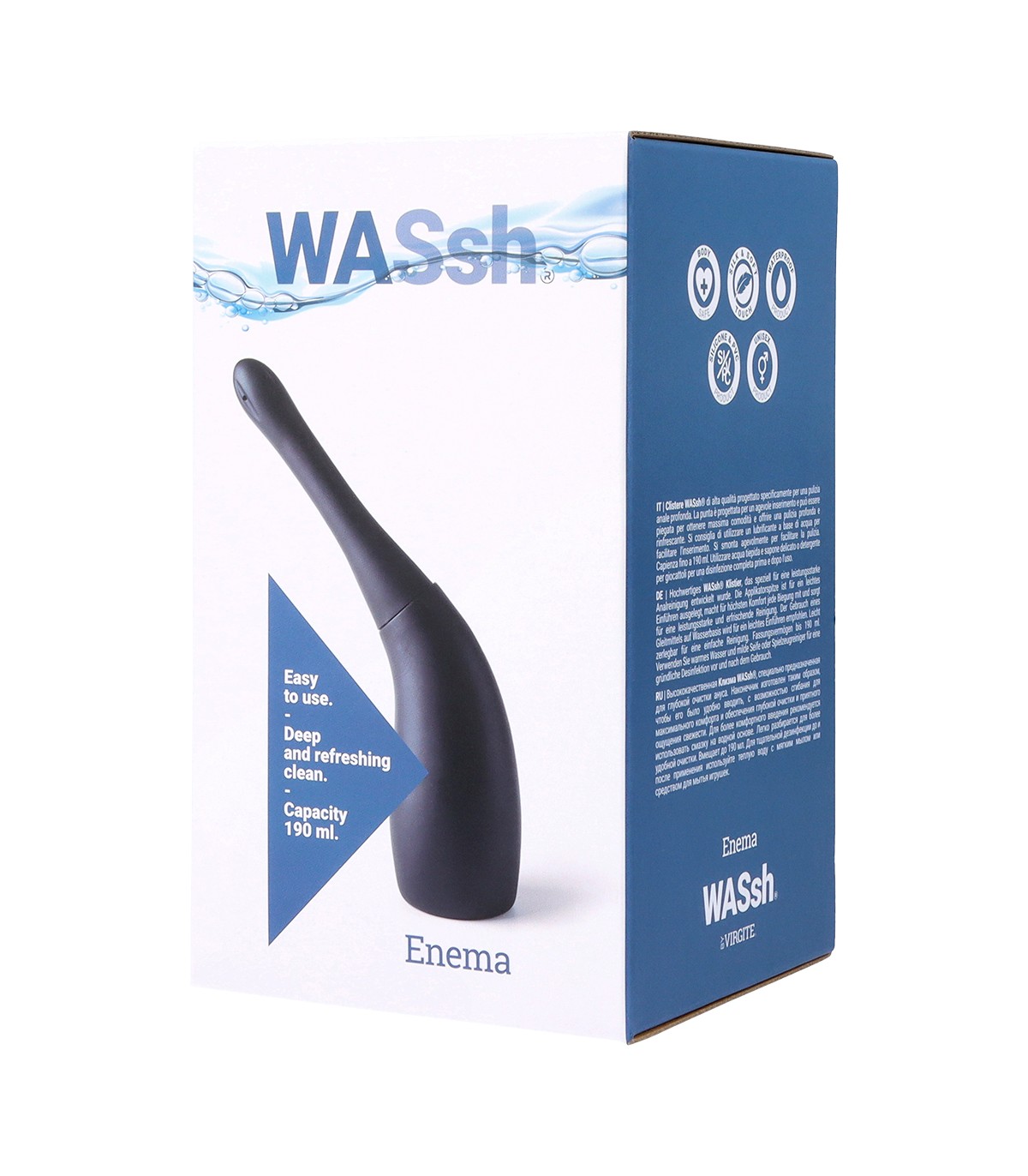 Ottieni una pulizia anale ottimale con la gamma di clisteri Washh. A seconda del gioco a cui giocherai, puoi scegliere la dimensione e la capacità del clistere.