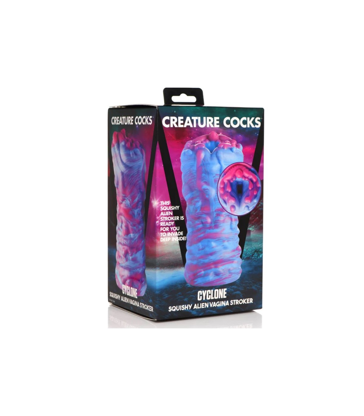 Questo extraterrestre e morbido Cyclone Alien Stroker è fuori dal mondo! Il silicone spesso, flessibile e di alta qualità è privo di ftalati e morbido come la seta. Entra e penetra nel tunnel strutturato di questo erotico orifizio alieno! Goditi il colore vibrante e l'aspetto umido e zampillante mentre lo tieni e lo accarezzi! Utilizzare solo con lubrificanti a base d'acqua. Per pulire, utilizzare acqua tiepida e sapone neutro, quindi spruzzare con un detergente per giocattoli e lasciare asciugare.