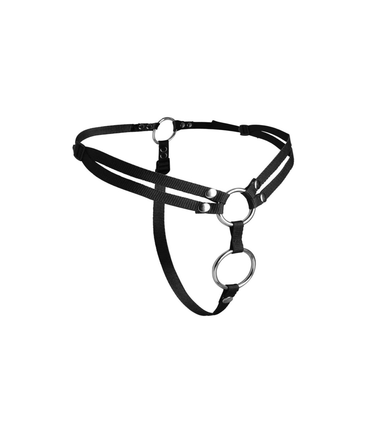 Con il sistema Unit Leverage, puoi offrire al tuo partner la migliore esperienza di doppia penetrazione. Il design a doppio anello ti consente di usare la tua immaginazione su quali accessori utilizzare. Le cinghie prendono il posto del doppio anello per tenerlo in posizione. Viene fornito con due set di O-ring, in metallo per peso e rigidità, o in silicone per un po' di elasticità e flessibilità. La comoda imbracatura in nylon completamente regolabile si adatta facilmente a una circonferenza della vita di 60 pollici. Simboleggiati dalle cinghie, entrambi i set di anelli sono progettati per mantenere i tuoi giocattoli saldamente in posizione anche quando l'azione si riscalda. Utilizzare uno o entrambi gli anelli, sia come imbracatura a cinghia che come imbracatura ad anello fallico a doppia penetrazione per gli uomini. Questo versatile sistema di imbracatura offre un mondo di possibilità di penetrazione per il massimo delle avventure DP strap-on.