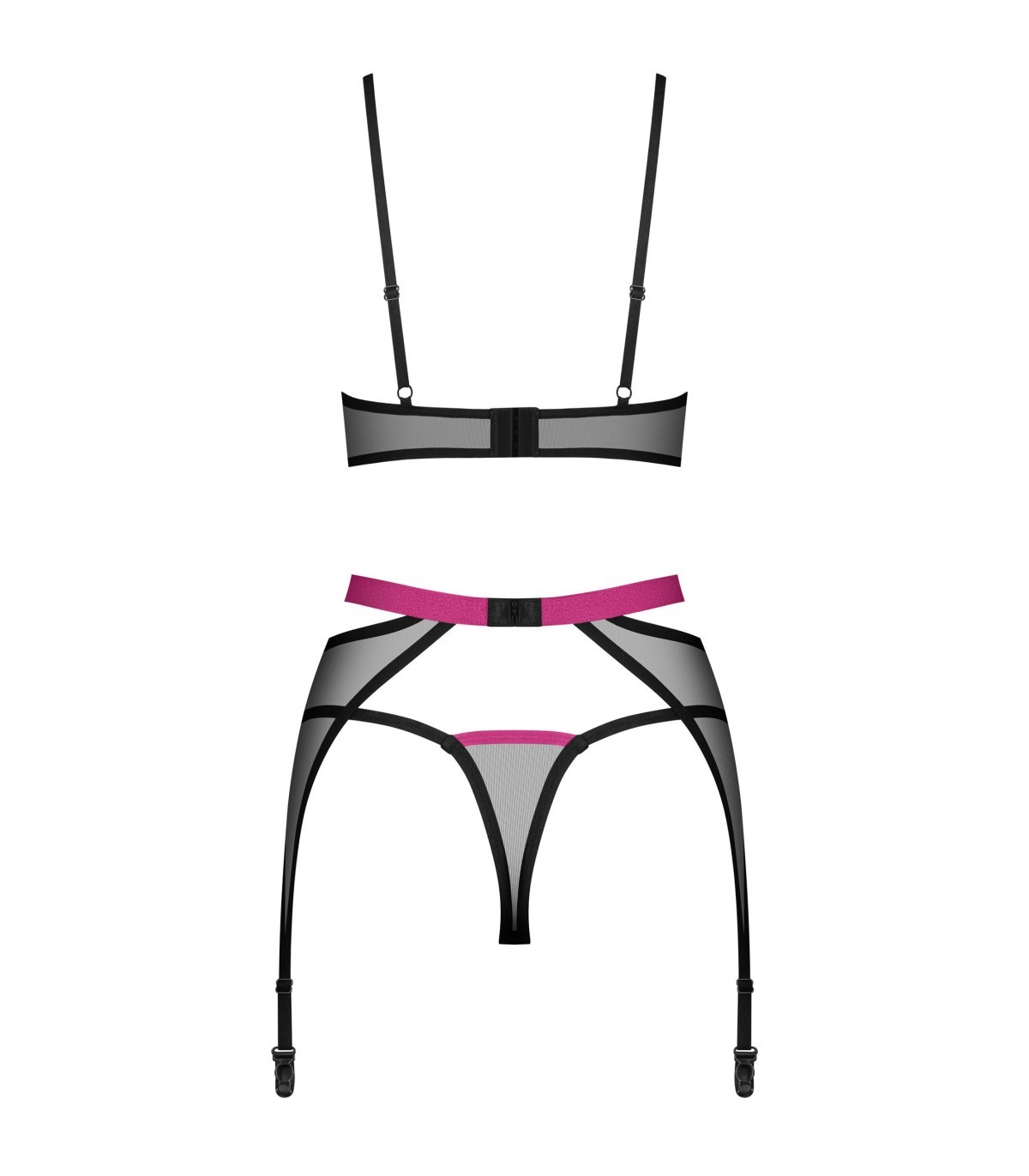Il set da tre pezzi della collezione Novenes elettrizza e colpisce con il suo design sensuale! È composto da reggiseno, perizoma e reggicalze. Realizzato in tessuto nero velato, impreziosito da accenti viola e dettagli scintillanti. La sua perfetta vestibilità garantisce un aspetto attraente e un comfort di utilizzo. Scopri tu stesso quanto può essere potente!