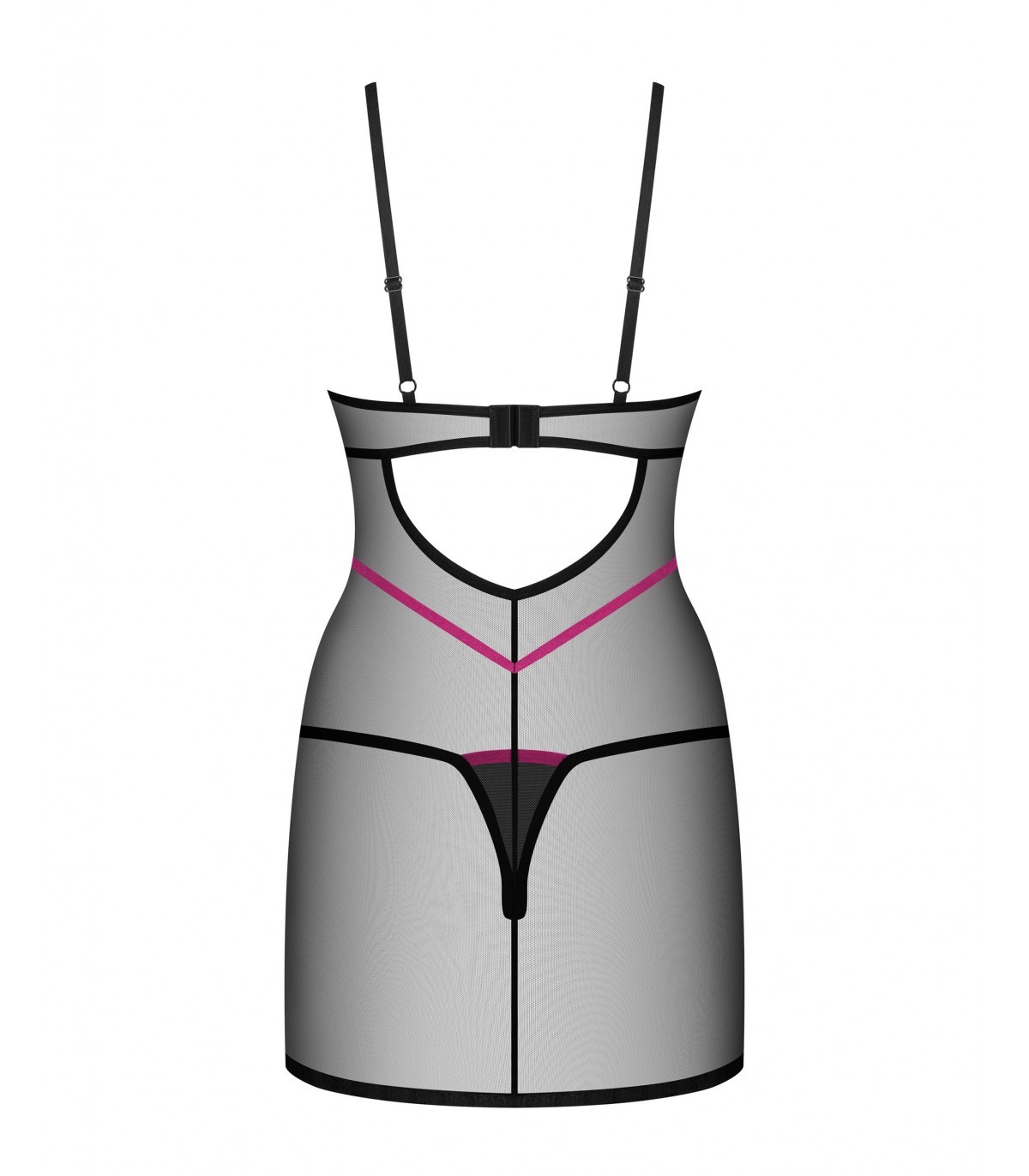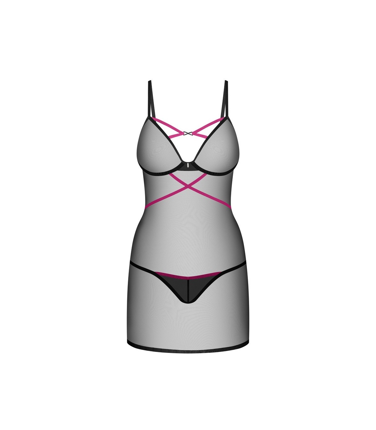 Un classico sensuale con un approccio moderno? Scopri tu stesso che l'abito Novenes combina entrambe le caratteristiche. Il tessuto liscio è seducentemente trasparente e valorizza sottilmente la figura femminile. Il taglio aderente è arricchito da cinturini viola tra le coppe e in vita. Il set è idealmente completato da un perizoma abbinato. Questa lingerie nera ti farà riscoprire il piacere della seduzione.