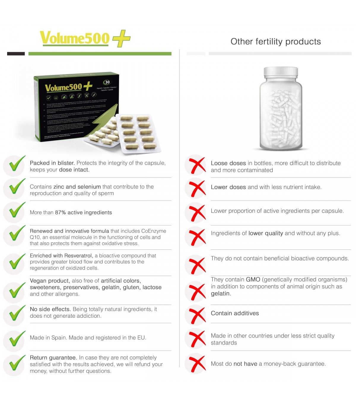 Aumenta la qualità e la quantità dello sperma Grazie alla nuova formula migliorata di Volume500+, un integratore alimentare totalmente naturale composto da vitamine e minerali che contribuiscono a migliorare la forza delle eiaculazioni e a raggiungere orgasmi più intensi. Inoltre, promuove la libido maschile e provoca un aumento di energia.