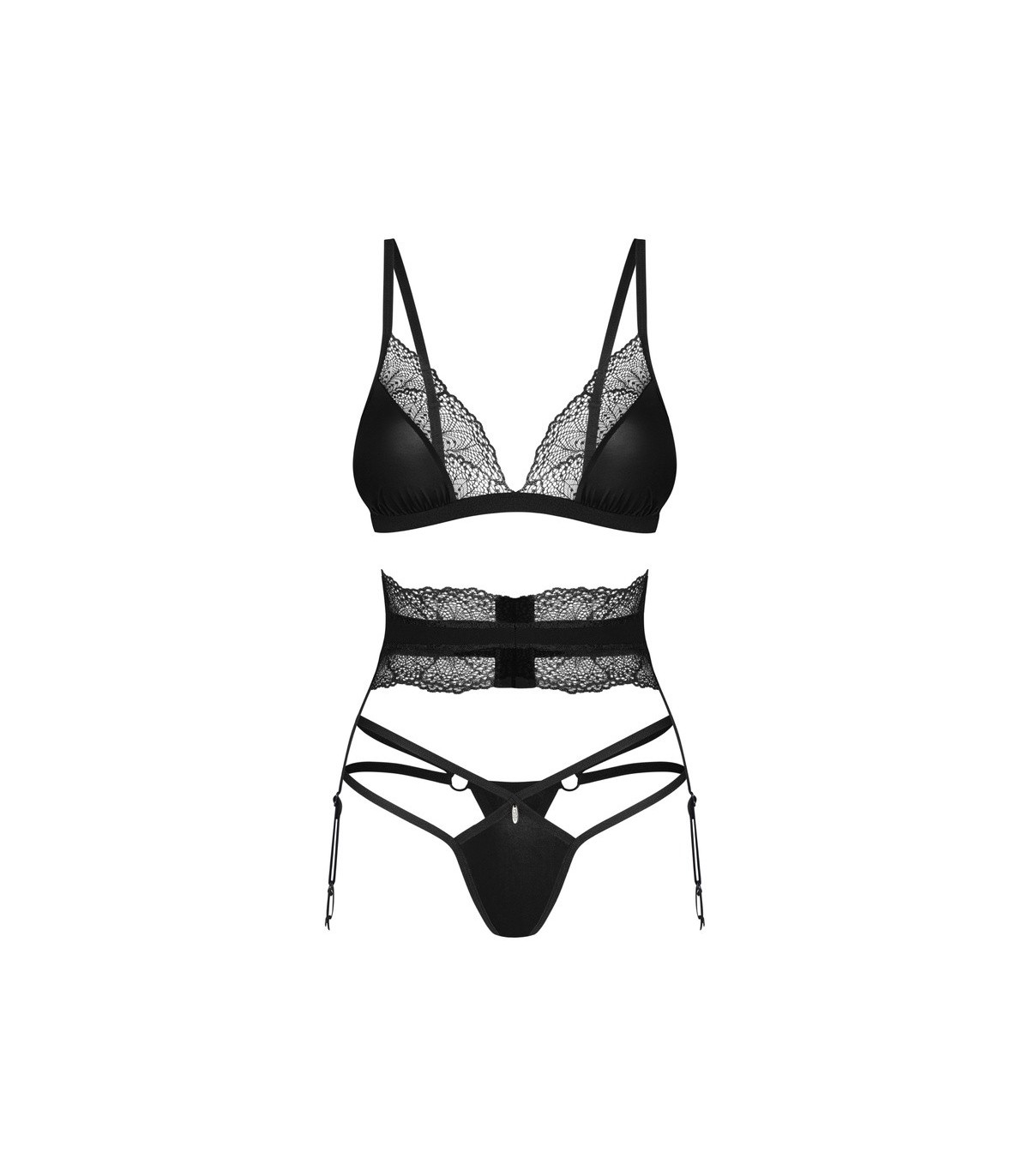 Assapora il trio Lobellis: reggiseno, reggicalze e perizoma. Ognuno realizzato meticolosamente, ogni dettaglio considerato. L'unione del rivestimento in pizzo e del tessuto nero forma un'armonia impeccabile. Con ganci sul retro, spalline regolabili e dettagli sensuali, il comfort si fonde perfettamente con la seduzione.