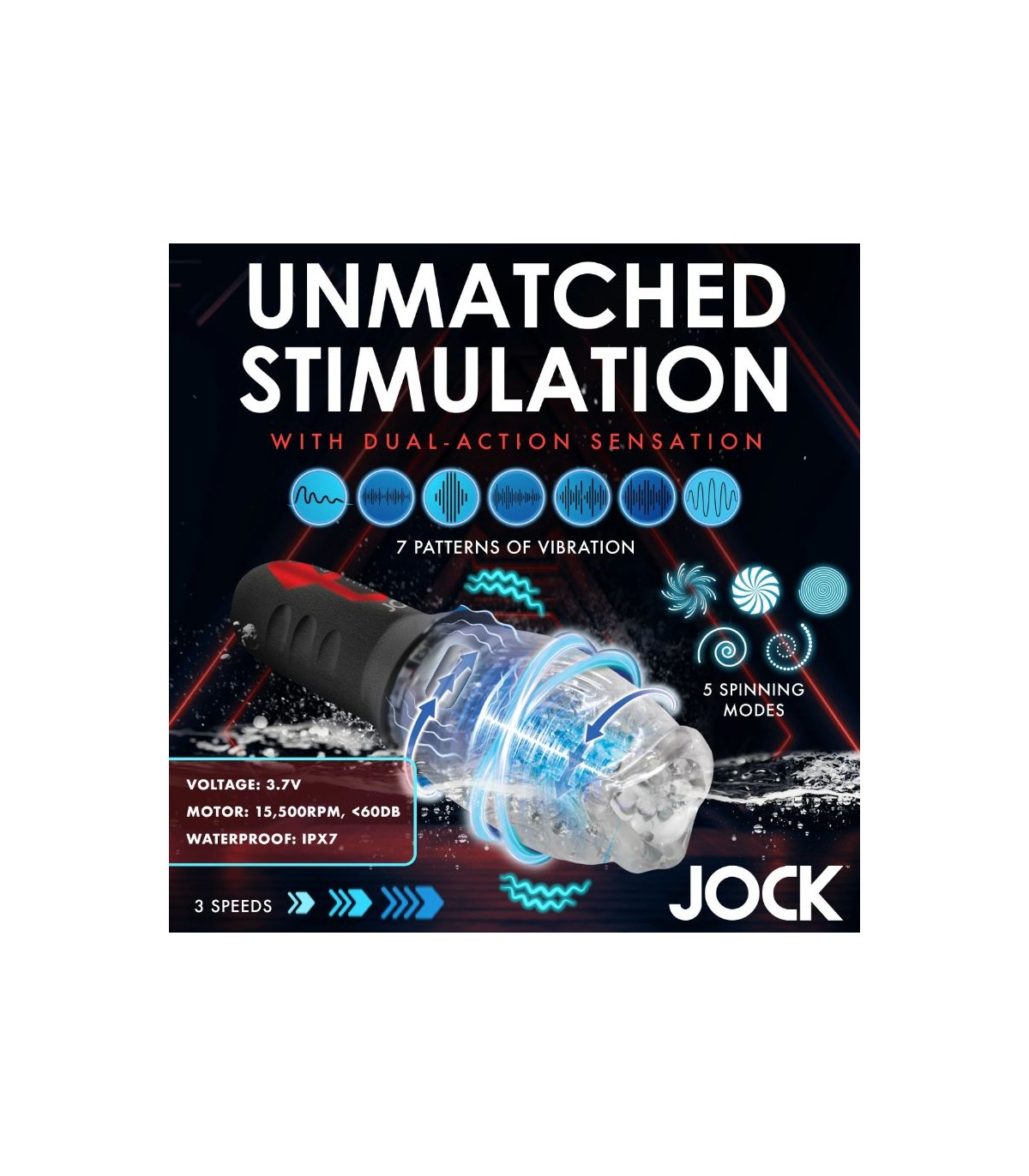 È ora di sfruttare lo strumento definitivo per sessioni epiche di piacere personale con il nostro Masturbatore vibrante e rotante JOCK! Immergiti in sensazioni intense con 3 velocità entusiasmanti e 7 allettanti modelli di vibrazione, perfettamente integrati da 5 modalità di rotazione strabilianti. Mentre immergi il tuo membro nell'ingresso a forma di bocca, puoi vedere il tuo membro racchiuso in una custodia in TPE rivestita in rilievo. La manica dalla struttura unica crea un paradiso sensazionale, afferrandoti e massaggiandoti come mai prima d'ora. Sei pronto a migliorare il tuo momento della doccia o del bagno? Il nostro design impermeabile, con grado di protezione IPX7, garantisce che il divertimento non si fermi mai, anche in acqua! Inoltre, puoi goderti sessioni infinite grazie al materiale ricaricabile, privo di ftalati e sicuro per il corpo. Libera i tuoi desideri più profondi con questo strumento di piacere seducente e divertente e senti la differenza!
