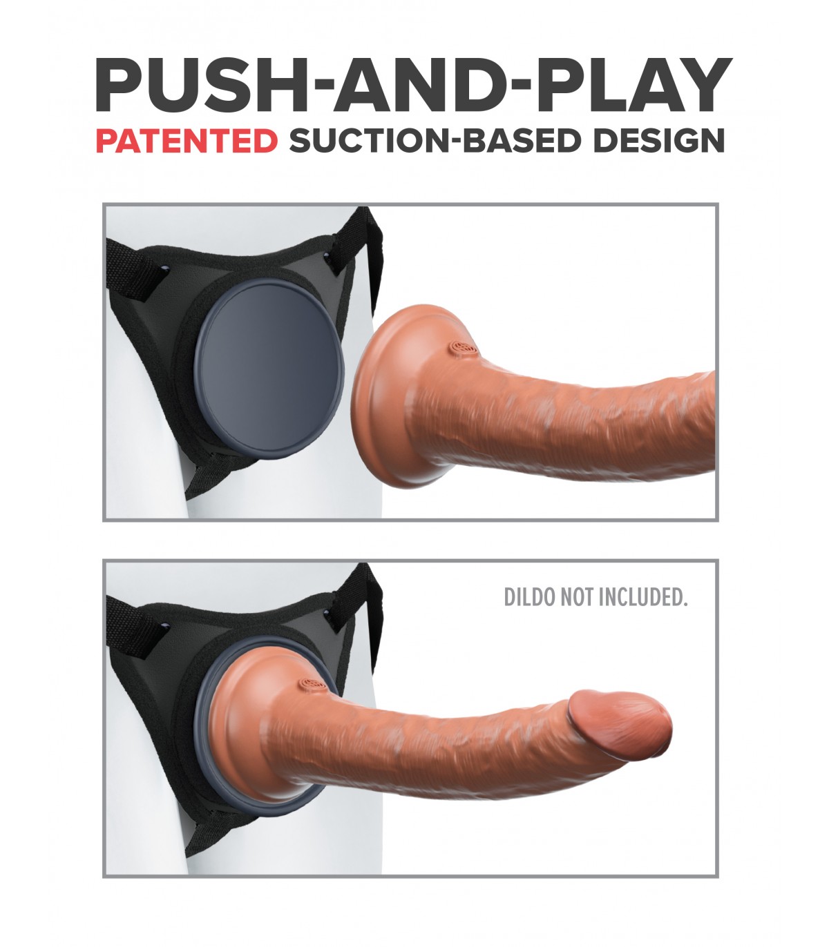 Premi e gioca! Basta premere la ventosa del tuo dildo o vibratore preferito contro la base concava fino a quando TUTTA l'aria tra loro non viene rilasciata. L'aspirazione crea un legame super forte senza bisogno di anelli o clip!