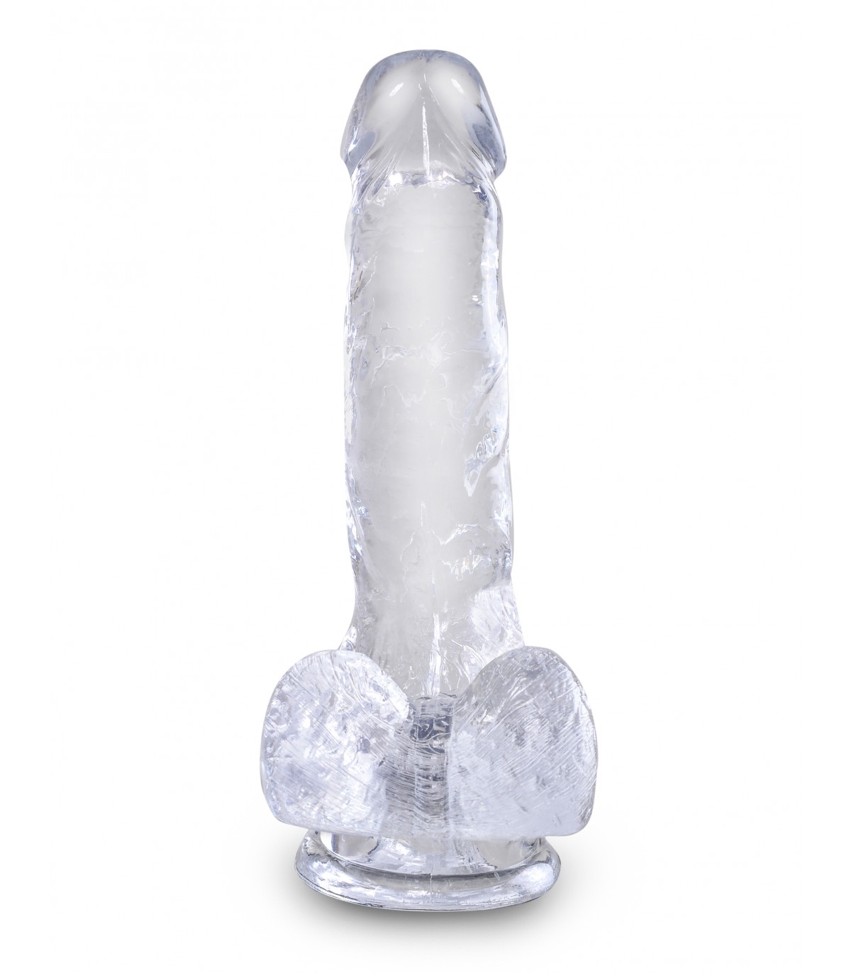 Chiaramente il migliore! Creata per migliorare la tua esperienza di piacere, questa formula appositamente progettata è praticamente inodore, non appiccicosa e facile da pulire. King Cock Clear combina un dildo traslucido con un design realistico del pene. La chiarezza luminosa e la forma realistica soddisferanno tutte le tue fantasie! Con il suo fusto flessibile, le vene dettagliate e la testa definita, King Cock Clear coinvolgerà i tuoi sensi visivamente e fisicamente. La potente base a ventosa aderisce a quasi tutte le superfici piane e rende compatibili tutte le imbracature per dildo.