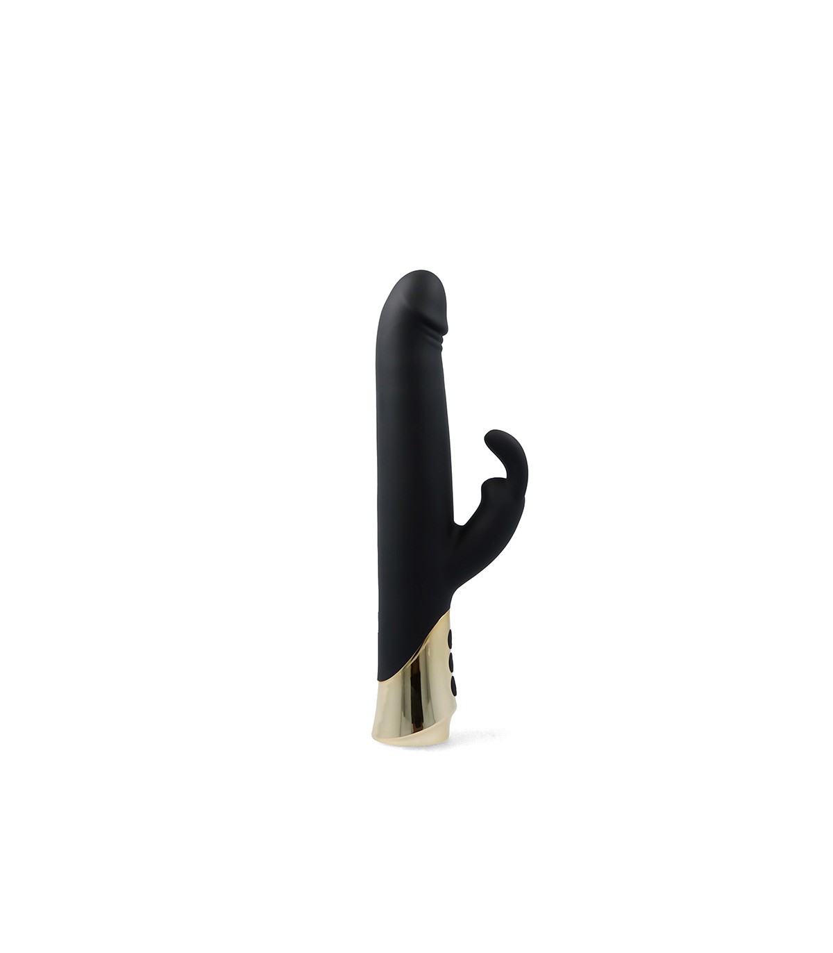 Doppio stimolatore vibrante realizzato in silicone e ricaricabile tramite cavo magnetico.