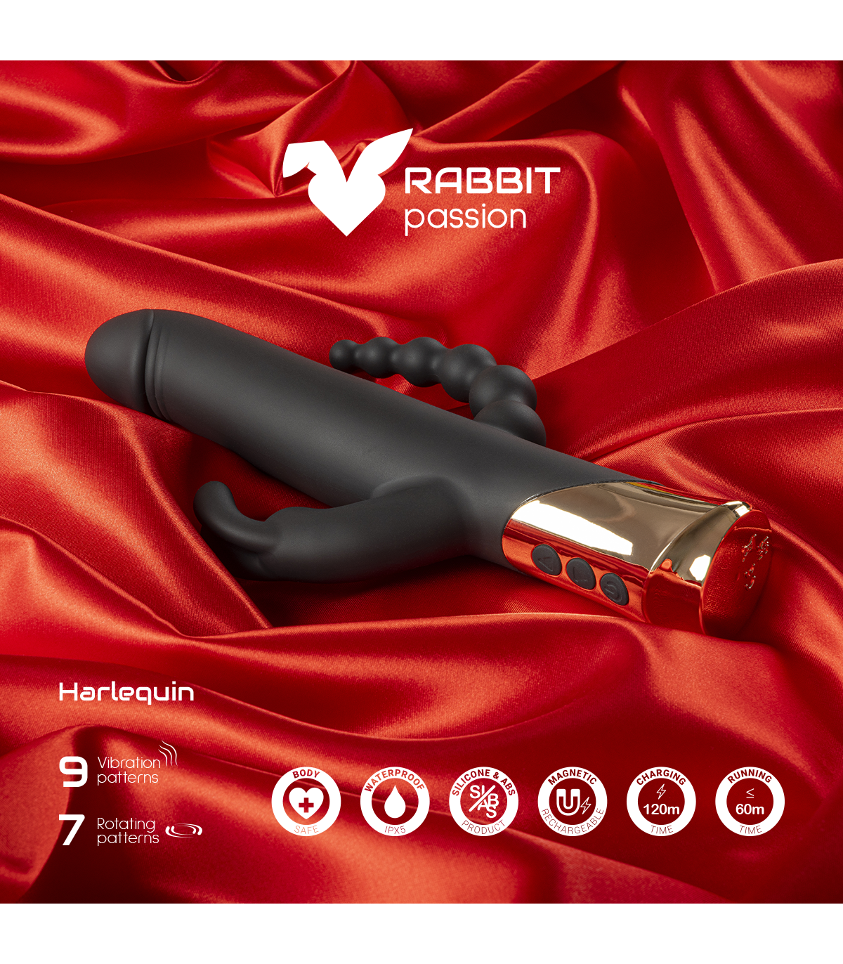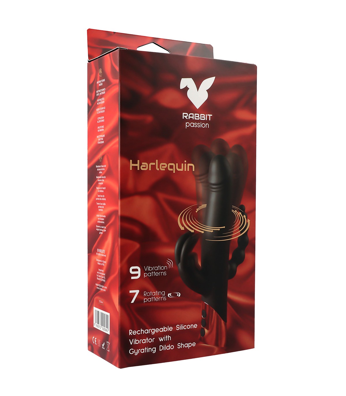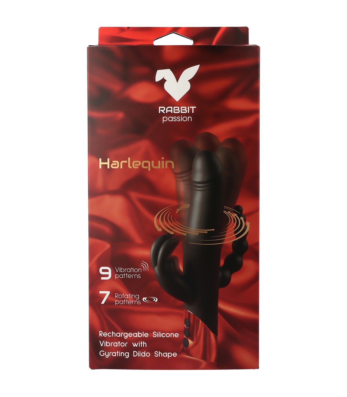 VIBRATORE A CONIGLIO RICARICABILE HARLEQUIN CON FORMA DILDO GIREVOLE