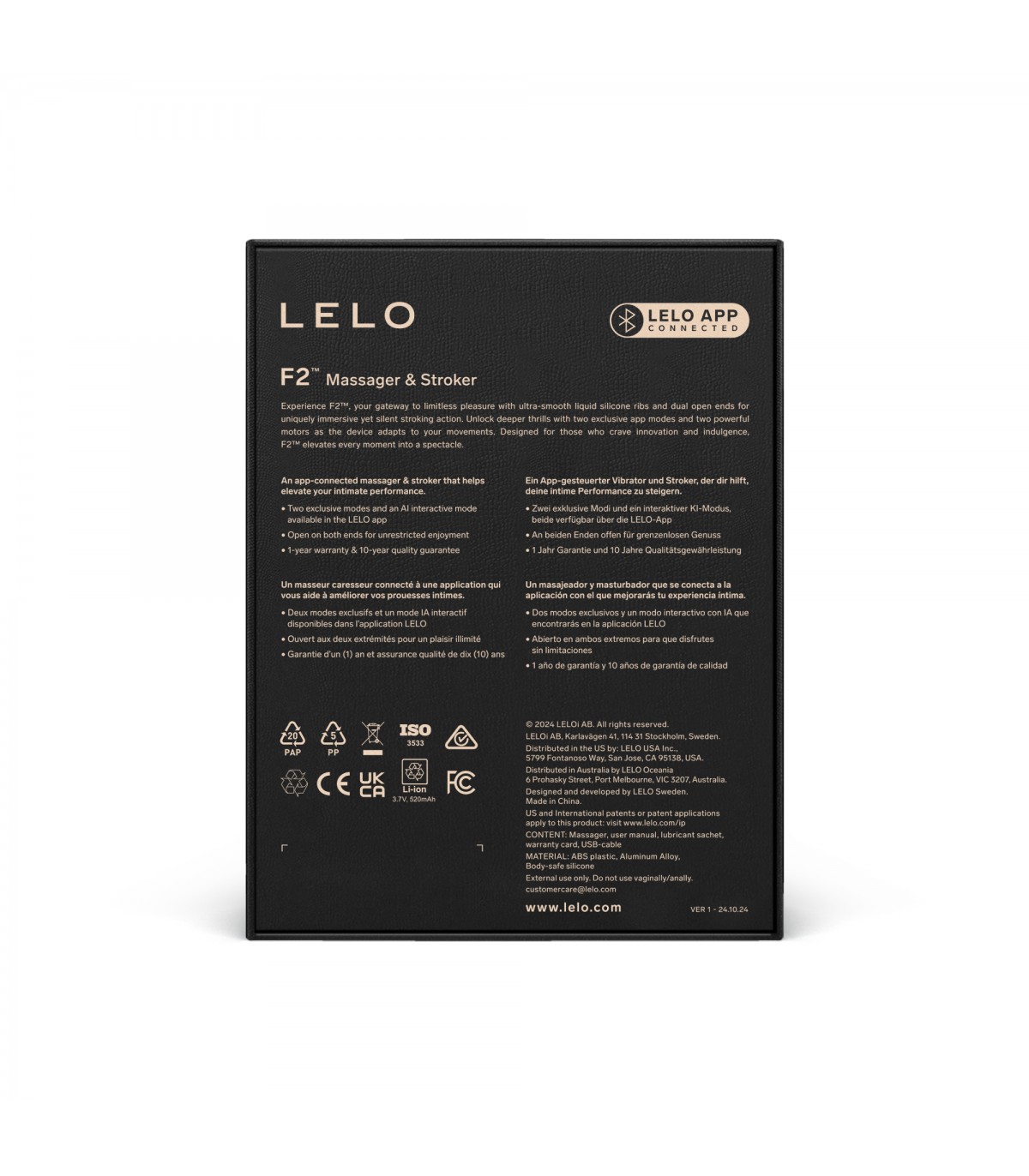F2S™ offre un piacere illimitato grazie al suo design aperto su entrambe le estremità, che elimina qualsiasi tipo di rumore. Sia i suoi due motori che le sue modalità si adattano alle carezze dell'utente, mentre le vibrazioni forniscono una sensazione di movimento.