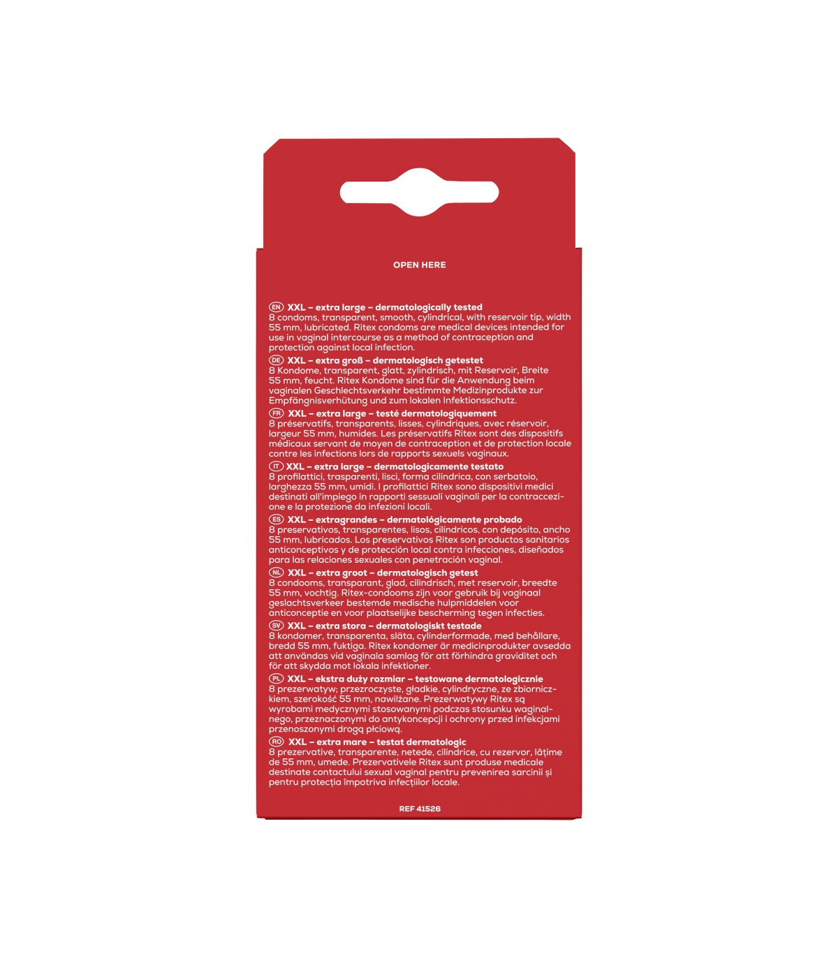 I preservativi Ritex XXL sono extra large, misurano circa 200 mm di lunghezza e 55 mm di larghezza quando non sono allungati. Sono altamente elastici e offrono una sensazione intensa. Sono rivestiti con un lubrificante extra per facilitarne l'uso durante il rapporto sessuale. Il Ritex XXL è il preservativo ideale per chi non si accontenta delle dimensioni convenzionali e cerca un maggiore comfort.