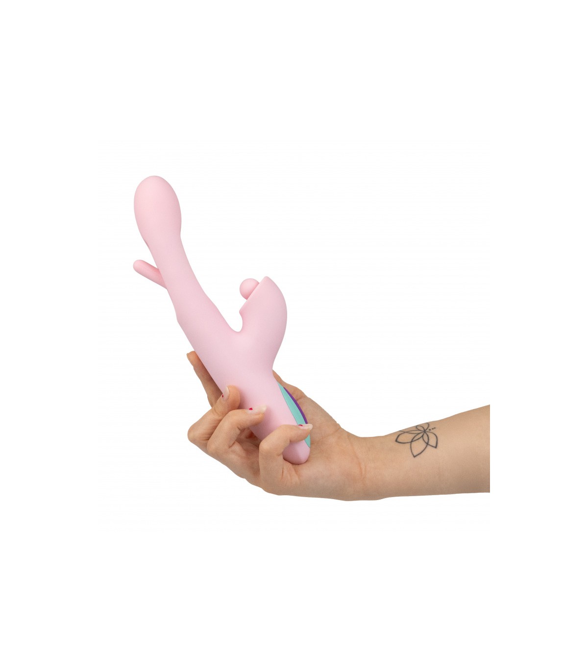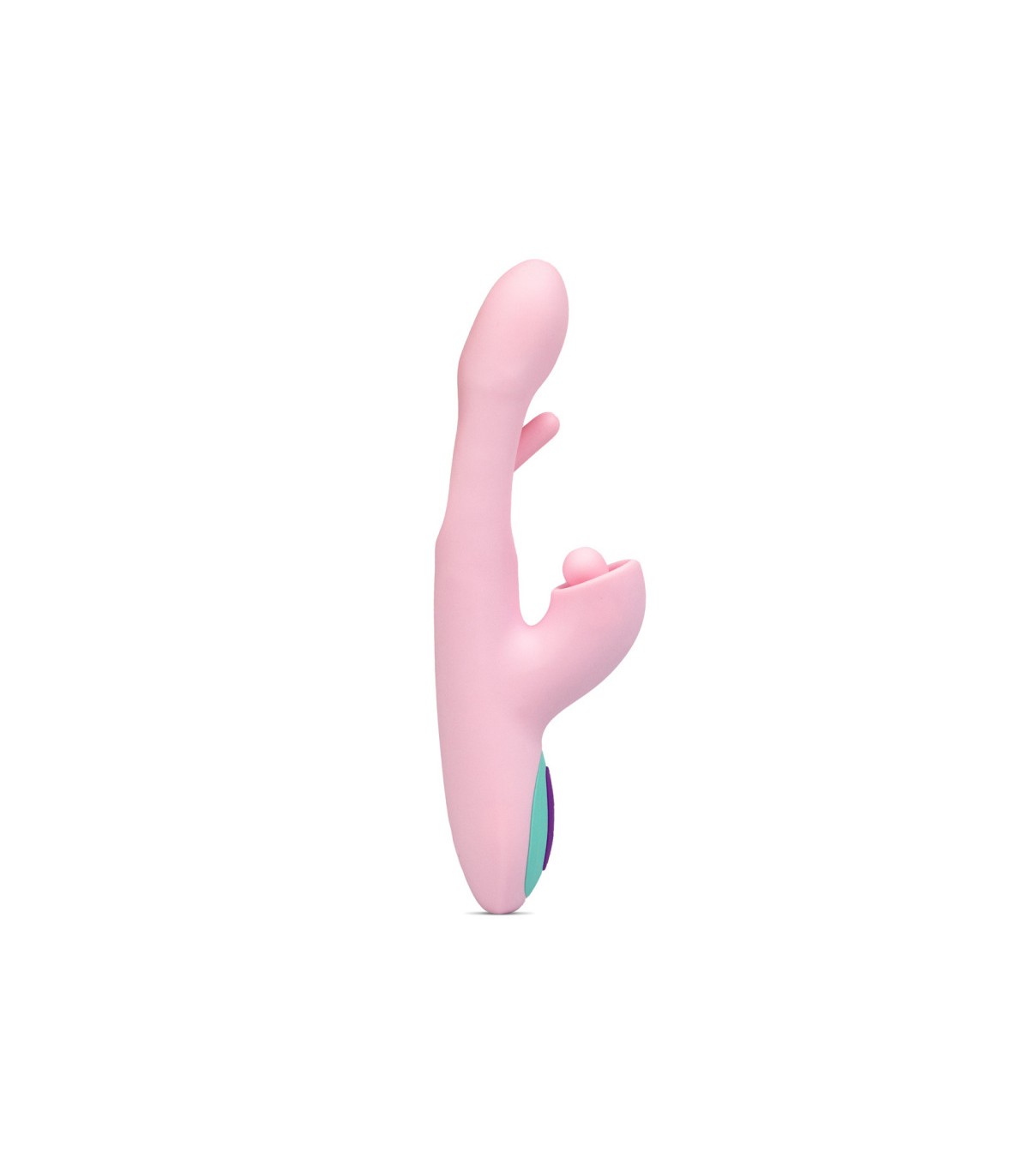 Lolah è un vibratore rabbit con linguetta interna e movimento a battito che stimola il punto G, mentre il suo movimento rotatorio massaggia il clitoride con movimenti circolari. Il tutto accompagnato da vibrazioni in entrambe le zone.