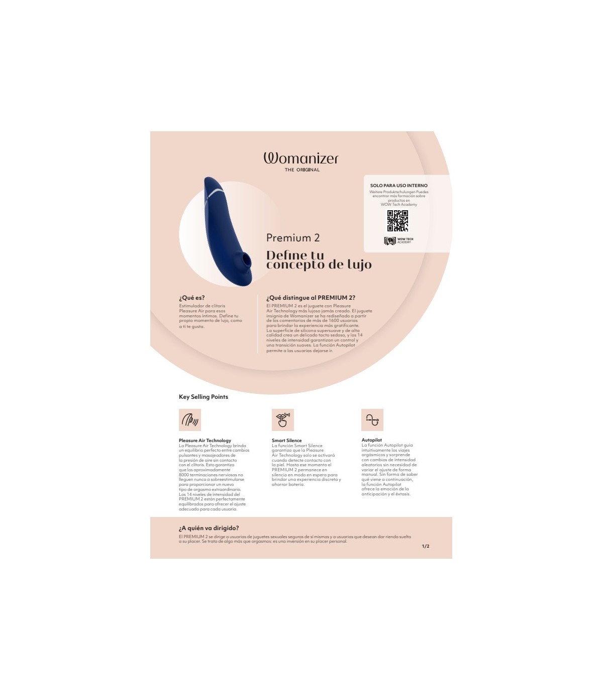 Il Womanizer PREMIUM 2 con l'originale tecnologia Pleasure Air è la nostra creazione più lussuosa fino ad oggi. È il Prada dei sex toy, il giocattolo definitivo per le donne che desiderano più di un semplice dispositivo con cui divertirsi. Con livelli di intensità mai visti prima e una funzione Autopilot migliorata per accompagnarti in nuove e imprevedibili avventure, il PREMIUM 2 è puro piacere con la massima qualità.