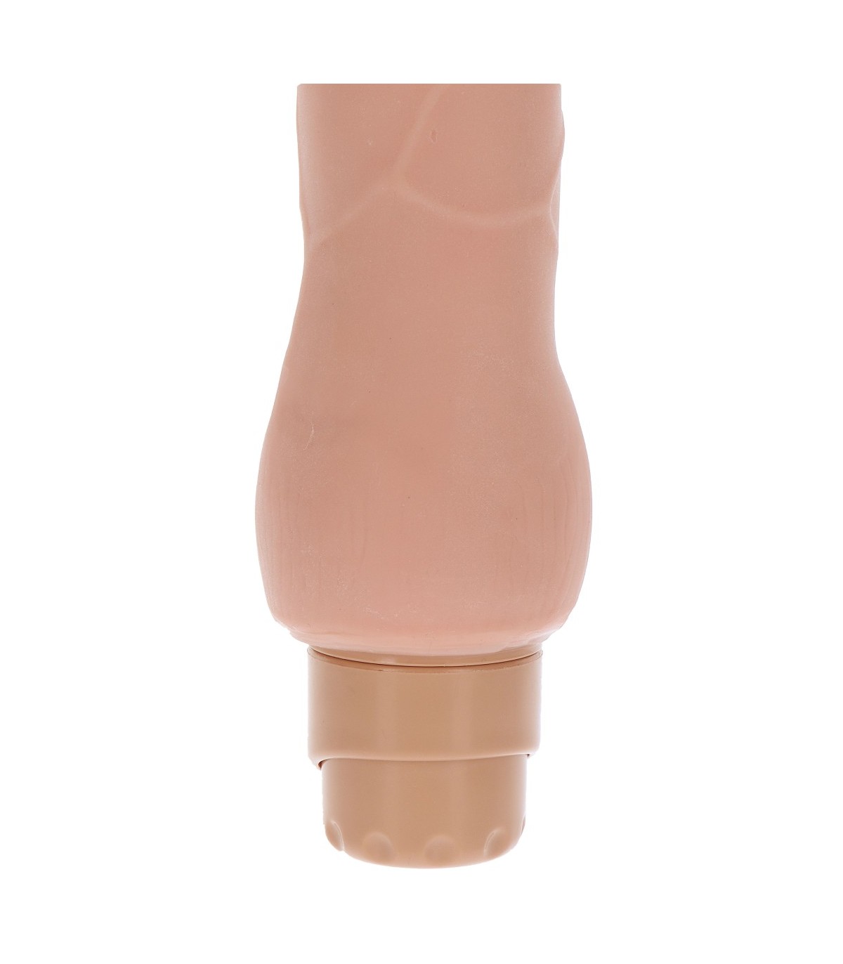 Pene con vene e vibrazione con diverse velocità. Realizzato in TPE a doppia densità, offre un vero piacere grazie al suo materiale come se fosse un vero tocco.